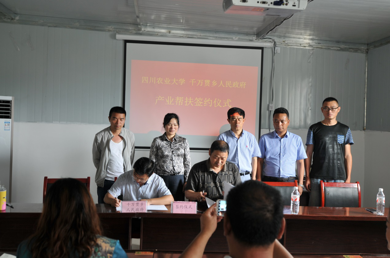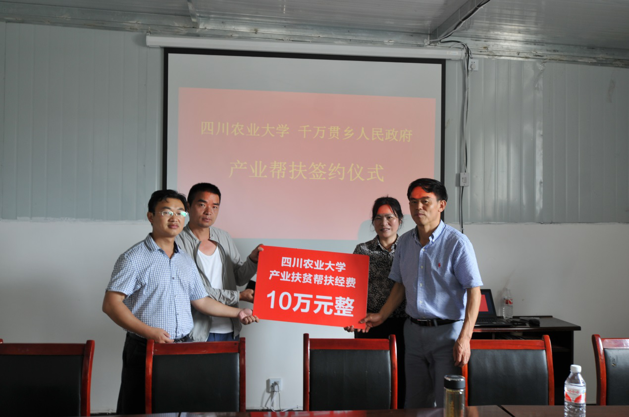 在千万贯乡,学校与乡人民政府举行了产业帮扶协议签订仪式。张敏与该乡政府负责人分别签订了种养结合和生态养蜂两个产业帮扶协议,学校向千万贯乡捐赠产业帮扶资金10万元。