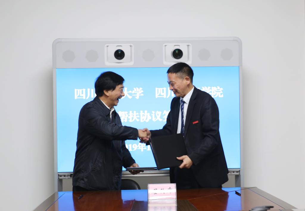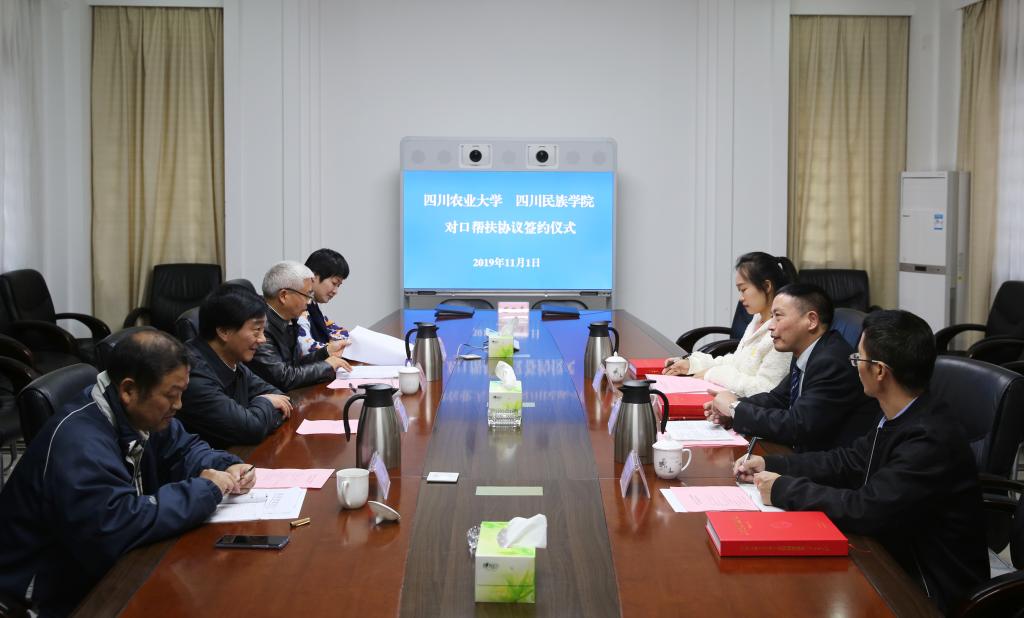 11月1日下午,2138cn太阳城集团——四川民族学院对口帮扶协议签约仪式在雅安校区第一办公楼举行。四川民族学院校长郭庆义和校长郑有良,副校长吴德,新农村发展研究院负责人出席签约仪式。签约仪式由吴德主持。