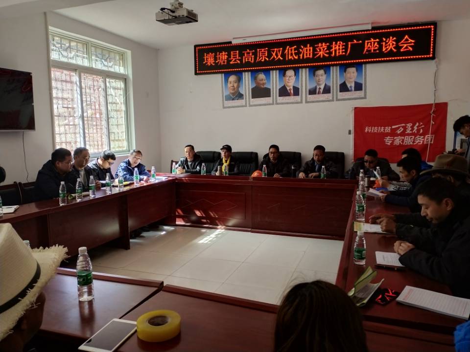 4月10-11日,我校教师吴永成教授带领2019科技扶贫万里行油菜产业技术服务团成员前往阿坝州壤塘县石里乡,参加壤塘县高原双低油菜种植现场会与推广座谈会。壤塘县委、县政府及科学技术与农业畜牧局相关领导,蒲西、宗科、石里、吾依、岗木达5个乡镇领导、农技人员和种植户代表约50人参加了现场会。吴永成教授结合高原实际,对参会人员进行了油菜高产栽培技术现场培训,服务团同时发放油菜栽培技术、病虫害防治资料60余份,并安排了10个油菜品种在不同乡镇的比较试验。座谈会上,在听取了壤塘县及石里乡油菜种植现状及产业发展计划后,吴永成教授就该县油菜全产业链发展提出相关建议,表示服务团将努力提供科技服务,助力该县高原双低油菜保质增产,助农增产增收。