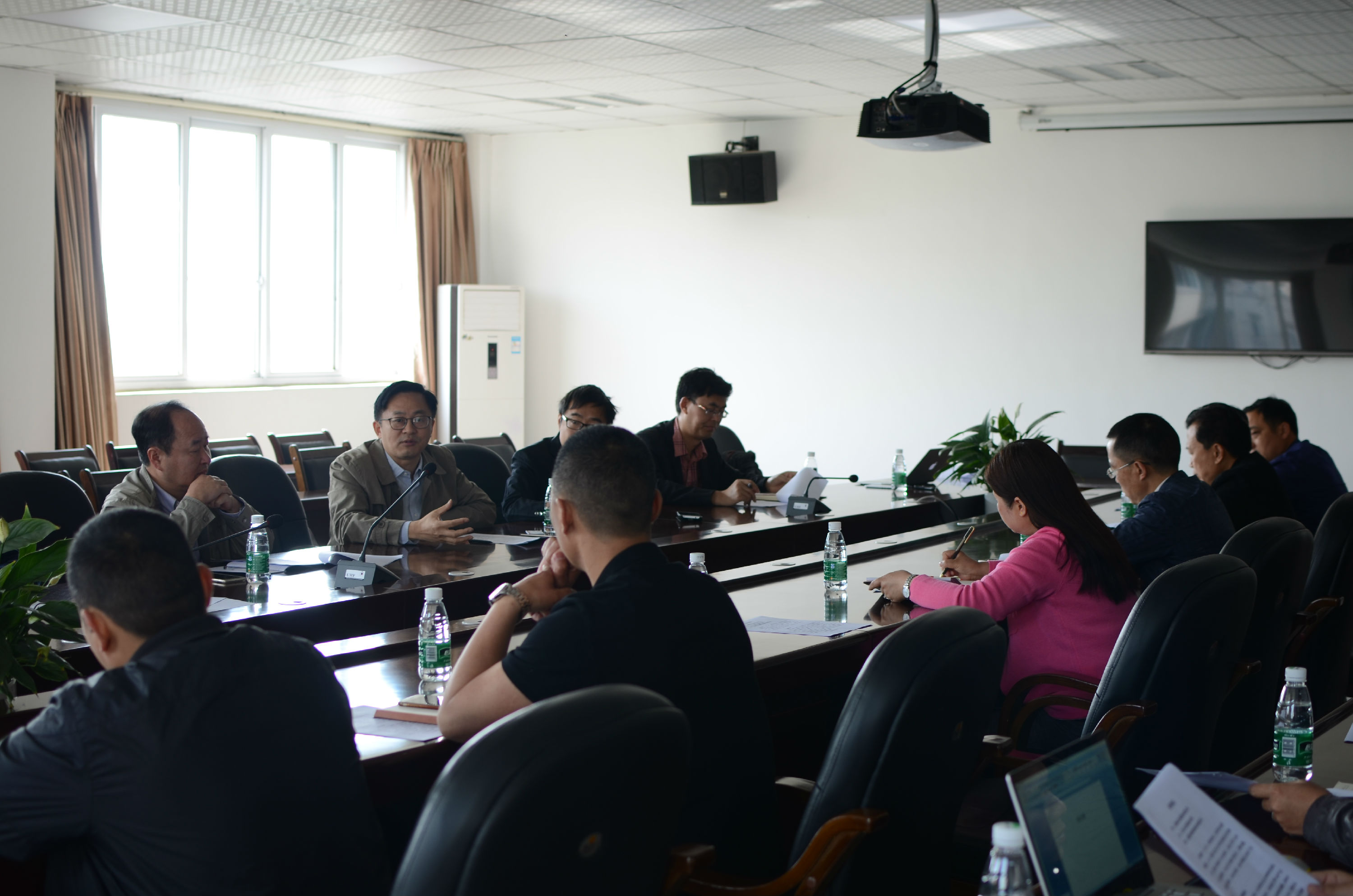 周伦理一行到达后听取了彭州分院院长侯凯对分院建设进度的介绍并给了相应意见。随后,周伦理与敖平镇书记刘江,彭州市农发局局长廖德才、书记徐来雨,吉峰集团副总经理李超,天地网公司负责人进行了座谈会。会议围绕“如何发挥龙头企业、高校研发团队和地方政府各自的科技资源优势,进一步提升校政企合作”这一议题展开。会上周伦理介绍了成都产研院取得的经验并以崇州示范项目为例提出瞄准一个方向做精做深做细的思路。与会人员各抒己见,纷纷提出了各自的意见和建议。