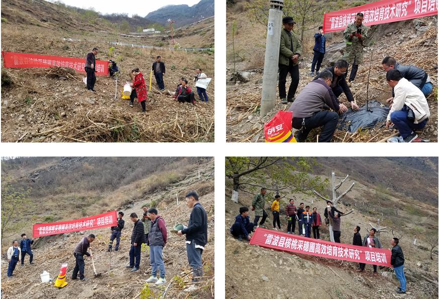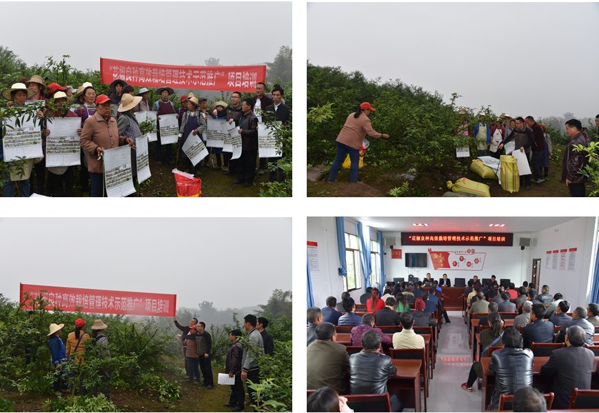 在长宁县下场镇民主村,龚伟一行在当地美川林业专业合作社负责人吴文祥的陪同下,对从事花椒栽培和生产管理的合作社成员和当地村民就当前花椒产业的发展趋势及春季施肥、保花保果、抹芽和病虫害防治等相关管理技术进行了4场次室内外讲解、培训和指导,共培训人员120余人次,发放彩印《青花椒管理周年历》150余份。在雷波县大坪子乡五指山村,龚伟一行在县林业与草局产业办邓福相主任和林改办许树才主任的陪同下,就春季核桃的栽植、施肥、修枝整形和嫁接管理及采穗圃管理等进行了4场次技术培训和指导,培训人员60余人次,发放彩印《核桃管理周年历》70余份。