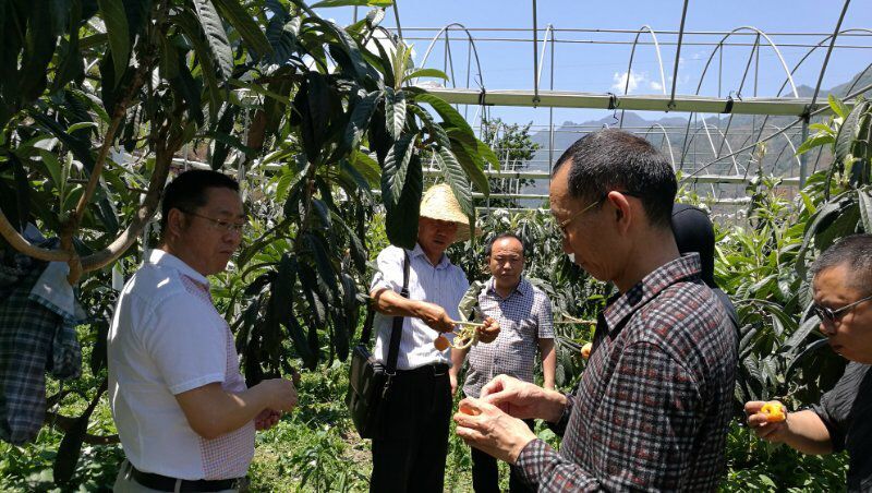 5月15日,汉源县分管农业的委常委贺东风率领副县长凌瑶、农工办主任李树敏、农业局局长陈茂显前往位于石棉县丰乐乡的2138cn太阳城集团枇杷科技创新示范基地考察,希望能与学校合作,引进枇杷新品种,将汉源的枇杷产业提档升级,助推全县脱贫攻坚工作。