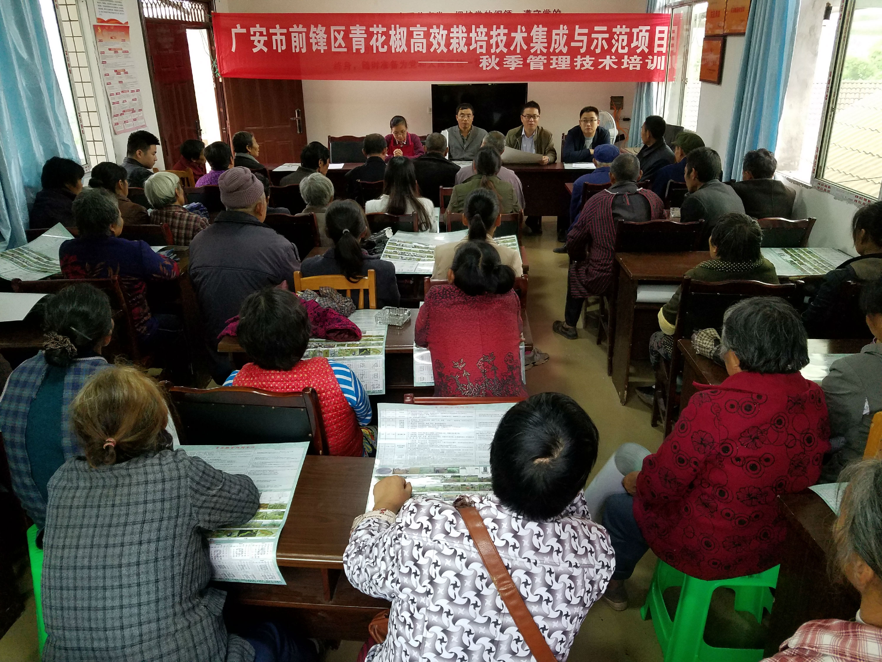 龚伟一行在观塘镇继光村和九桥村、虎城镇柏树村和双河村及广兴镇寨坪村和碾石村就青花椒秋季需要开展的补植补造、水肥管理、修枝整形、病虫害防治、控梢、树干刷白等相关管理工作开展了4次室内培训和6次室外培训,累计培训青花椒林业技术人员、专业合作社技术骨干和种植户等相关人员共计350余人,并对培训者提出的生产管理相关问题进行了逐一解答。另外,此次培训活动累计发放印刷的彩色青花椒周年管理历表400余份,通过该历表让相关人员进一步图文并茂地了解青花椒高效栽培管理技术及各时间栽培管理需做的工作和方法。广安市林业技术推广站袁川站长和张艳丽博士、前锋区林业局兰本剑副局长和易昭彬站长及相关乡镇部分领导和林业技术人员参加培训活动。