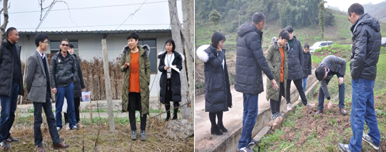 龚国淑教授一行深入田间地头,仔细调研当地实际情况并现场指导。在火炬山村龚教授发现,该地种植户们对猕猴桃溃疡病的预防措施不足,针对这一问题,龚教授讲授了冬季防护如何有效预防猕猴桃溃疡病的相关措施,并对避雨大棚控病措施涉及的配套技术进行了现场指导,为来年丰收打好基础。在水井村、青龙场村正在落地龚国淑团队研究的猕猴桃主要病害综合防控技术,她对避雨大棚控病措施涉及的配套技术进行了详细的现场指导。随后,龚教授到芦山县猕猴桃-马兰千亩规划区,对该新型产业发展的可行性进行了评估。通过实地调查,龚教授认为猕猴桃作为一种精细化管理的作物与马兰这种粗放管理的药材在同一块地种植会存在很多矛盾,并建议小面积尝试种植一些猕猴桃抗病品种,不要盲目扩大种植面积。