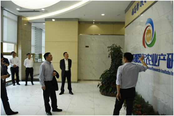 李良钰一行在周伦理陪同下参观了农高区创新中心及产研院,主要了解了产研院主要业务板块及3e平台建设推进情况。