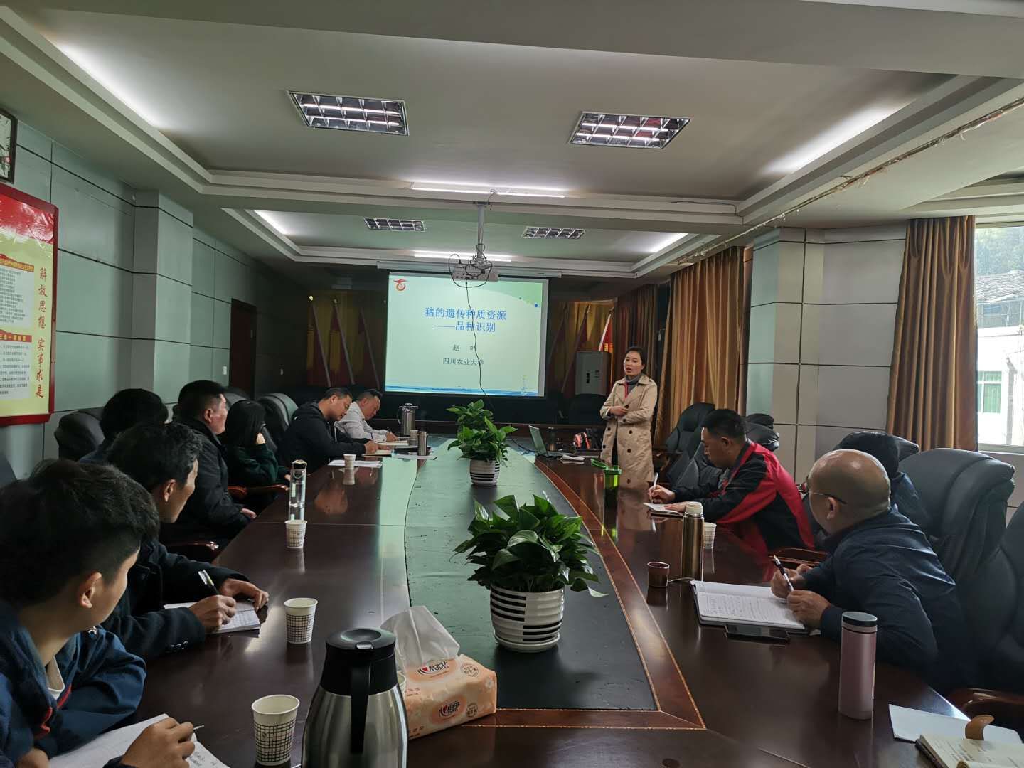 针对苍溪县基层土壤污染防治和极致修复技术贫乏,管理水平不对称等问题,张世熔先后为在县环保局开展了“土壤污染防治与修复治理技术”、“油气开采及天然气净化污染的监管”等专题讲座,并赴元坝气田等基地开展调研和污染防控技术指导。在青川县,罗培高和陈巍重点就八月瓜品种改良、栽培管理技术及产业发展趋势等内容进行了专题培训,并赴当地八月瓜种植基地进行栽培技术现场指导。在朝天区,刘益平为当地农技人员开展了“土鸡养殖和疫病防控技术”专题培训,并赴当地保种选育场和土鸡养殖场开展养殖技术指导。在剑阁县农村农业局,赵叶为生猪养殖户代表开展了“猪的遗传种植资源-品种识别”专题培训,并赴秀钟乡太清村等地调研生猪养殖基地建设和生产情况,重点就标准化生猪养殖基地建设、猪种资源利用、生猪健康养殖及畜禽粪污资源化利用等技术开展现场指导。