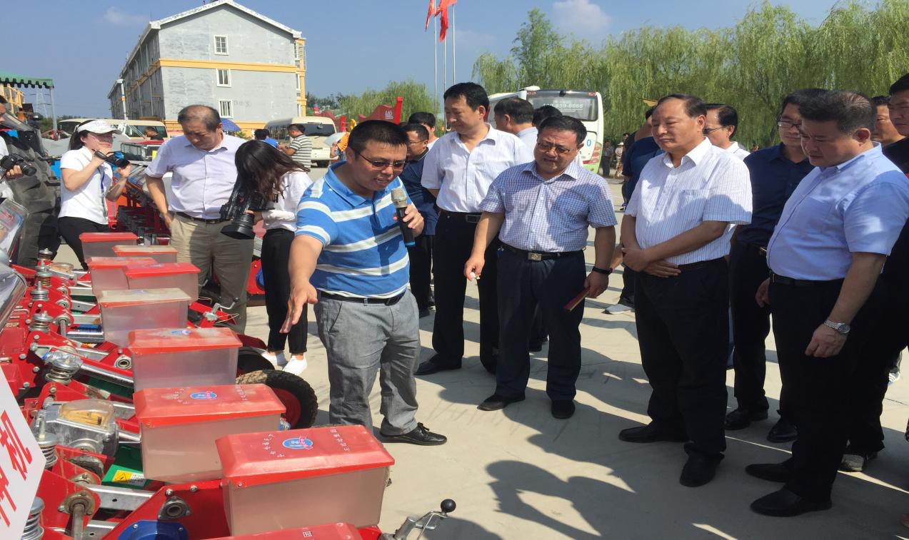 1日下午,参会人员来到房寺镇3万亩大豆核心种植示范基地,参观了由我校杨文钰教授指导实施的校县合作项目“玉米 -大豆带状复合种植技术千亩示范片”,雍太文教授代表新农村发展研究院德州分院汇报了近几年玉米-大豆带状复合种植技术在山东省的示范应用及玉-豆-畜种养循环项目的建设准备情况,并结合耕地轮作休耕相关政策及田间玉米、大豆长势讲解了玉米-大豆带状复合种植的“高产出、可持续、机械化、低风险”等技术优势及技术要点。在房寺镇邢店社区大豆展览馆,雍教授再次向与会代表介绍了我校与四川刚毅、河北农哈哈等企业合作研发的玉米大豆施肥播种机、大豆联合收获机的机具性能及农机农艺整合技术研发情况。玉米、大豆良好的大面积示范效果及完整的配套农机具赢得了与会代表的高度肯定和一致好评。