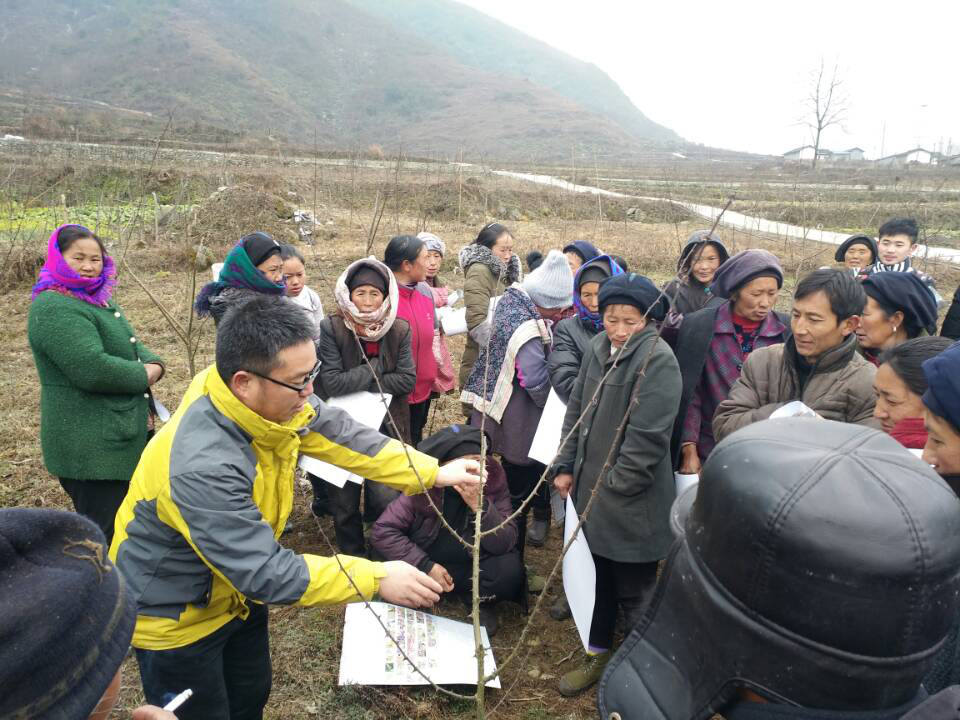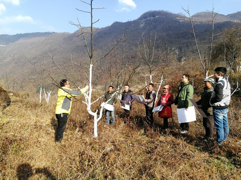 龚伟一行在石棉县安顺彝族乡麂子坪村、田湾彝族乡跃进村和蟹螺藏族乡江坝村就当地已规模化发展的红花椒、青花椒和核桃的清园管理、修枝整形、树干涂白、肥料施用、林下蔬菜种植等相关田间管理技术进行了系统的培训与技术示范,并就花椒和核桃春季种植管理技术要点和需开展的相关工作给种植户进行了安排与强调。在石棉县蟹螺藏族乡江坝村尔苏木雅生态干果专业合作社核桃种植基地,针对核桃园存在的核桃枝枯病提出了防治措施与方法。累计培训4场次,共培训120余人,发放彩印花椒和核桃管理周年历共计150余份,并对培训人员提出的花椒和核桃种植管理技术问题进行了详细解答。