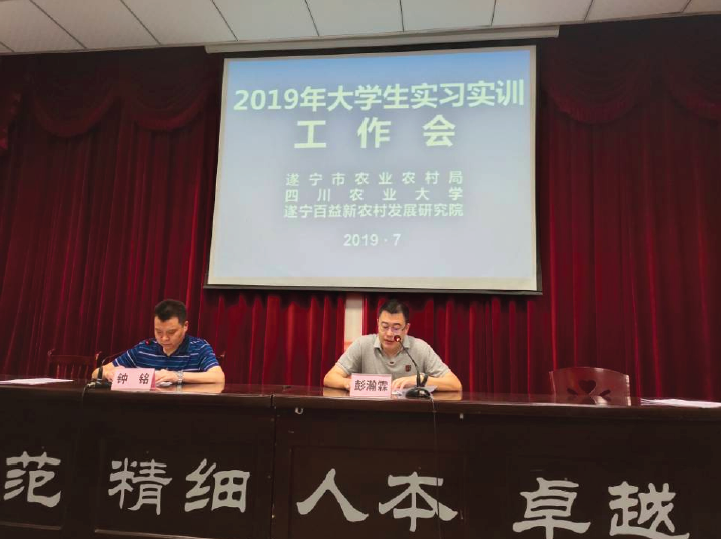 7月16日,2019年度“逐梦计划”——遂宁市大学生实习实训工作会在遂宁职业技术学校举行,会议由遂宁市农业农村局、2138cn太阳城集团主办,遂宁百益新农村发展研究院承办。遂宁市农业农村局机关党委书记彭翰霖、农业局人事科科长钟铭、各企业负责人、各高校大学生等参加会议。
