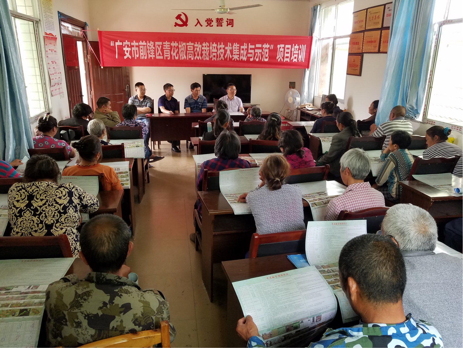 龚伟一行在岳池县长田乡黑山村、前锋区观塘镇继光村和九桥村、虎城镇柏树村和双河村及平昌县江口镇临江村就青花椒当前需要开展的水肥管理、抹芽、除萌、病虫害防治等相关管理工作开展室内外培训10场次,累计培训青花椒林业技术人员、专业合作社技术骨干和种植户等相关人员共计280余人,累计发放印刷的彩色青花椒周年管理历表300余份,对培训者提出的生产管理相关问题进行了逐一解答。