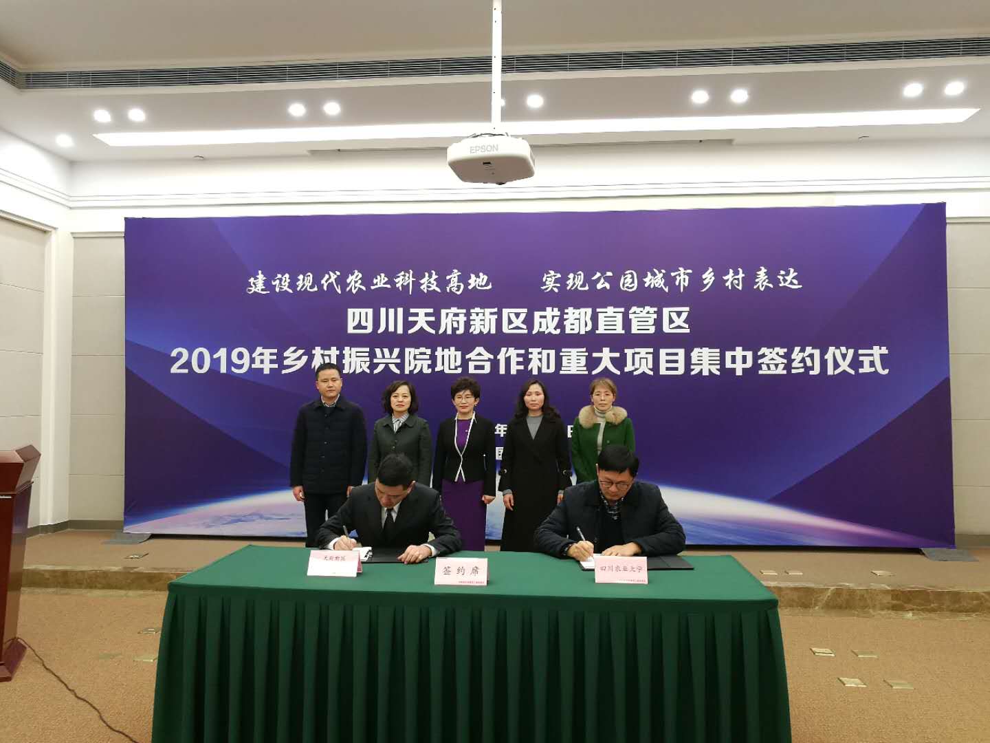 2月19日上午,四川天府新区成都直管区2019年乡村振兴院地合作和重大项目集中签约仪式在天府新区管委会第九会议室召开,党工委管委会副书记、纪工委书记刘荣华,党工委委员、管委会副主任陈先龙,四川省农业科学院党委书记吕火明,四川省农业科学院院长牟锦毅,我校新农村发展研究院常务副院长周伦理、园艺学院教授邓群仙、王小蓉及相关企业家代表参会。