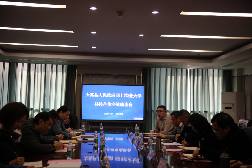 12月1日,中共大英县县委常委、宣传部部长翟宁凤,副部长李耘等9人赴我校,主要围绕农业产业发展、技术支撑、人才引进及合作机制等方面进行深入交流,新农村发展研究院副院长饶远林、胡剑锋及相关专家参会。会议由饶远林主持。