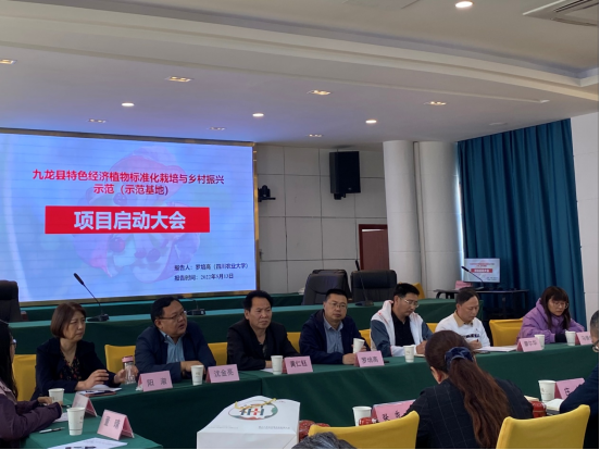2022年5月12-13日,我校农学院罗培高教授、基地管理处沈金亮副处长、农发院及其它相关单位专家赴甘孜九龙县参加《九龙县特色经济植物标准化栽培与乡村振兴(示范基地)》项目启动会。九龙县副县长陈强、副县长庄伟、九龙县农牧农村和科技局局长张秀英、原甘孜藏族自治州委员会副秘书长黄仁钰等人参加会议。