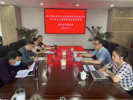 5月17日下午,四川雅安国家农业科技园区与我院合作座谈会在园区管委会召开,园区党组成员、管委会副主任王红兵,副主任苟代全,我院直属党支部书记、副院长吴晓斌等相关负责同志参加座谈。