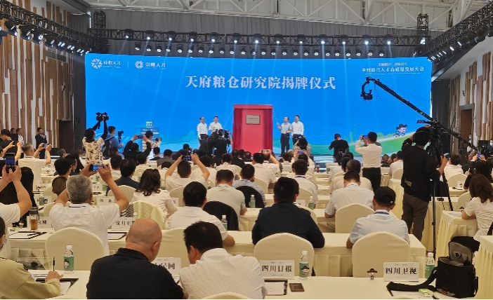 天府粮仓研究院是崇州市联合中国农大、中国农科院、川农大、中化农业、中粮集团等院企,搭建以“政、产、学、研、金、介、用”七位一体的合作平台。