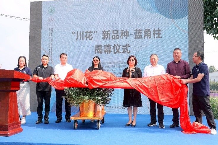 6月18日,我校自主研发川花新品种“蓝角柱”在四川省花协会指导,风景园林学院、成都市花卉协会等支持下,由成都市易境园艺有限责任公司在彭州市首次发布。“川花”新品种研发与推广指导专家高素萍教授;我校乡村振兴学院(新农村发展研究院)副院长饶远林;风景园林学院院长、党委书记李西,副院长蔡军,以及健康人居环境与景观多样性中心、园林系相关负责人应邀参会。