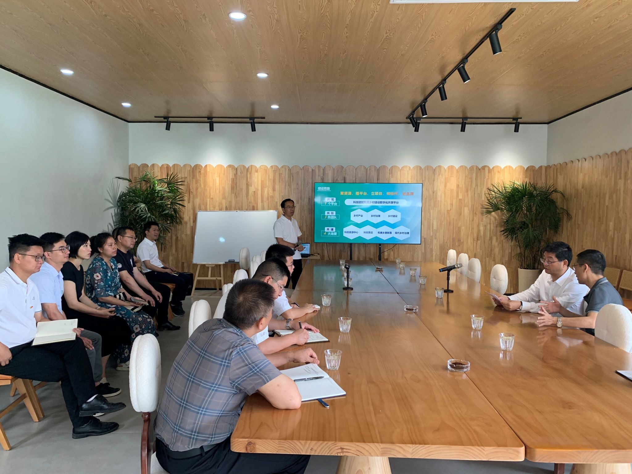 饶远林从项目建设思路、建设定位、空间布局、投资估算和资金筹措情况等方面汇报了项目建设和推进情况。袁海晗对我校在项目中的思考和探索给予肯定,并针对乡村现代化产业布局、科创资源中心平台搭建、乡村品牌培育、茶旅融合发展等工作提出建议。