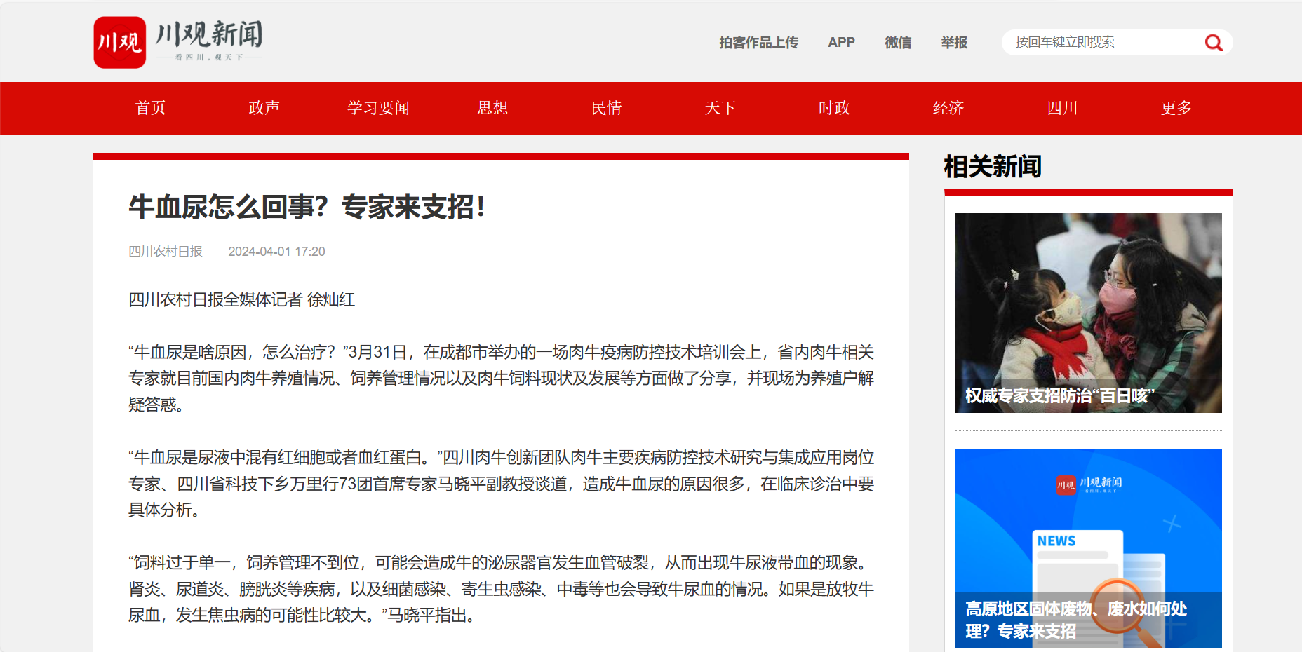 “牛血尿是尿液中混有红细胞或者血红蛋白。”四川肉牛创新团队肉牛主要疾病防控技术研究与集成应用岗位专家、四川省科技下乡万里行73团首席专家马晓平副教授谈道,造成牛血尿的原因很多,在临床诊治中要具体分析。