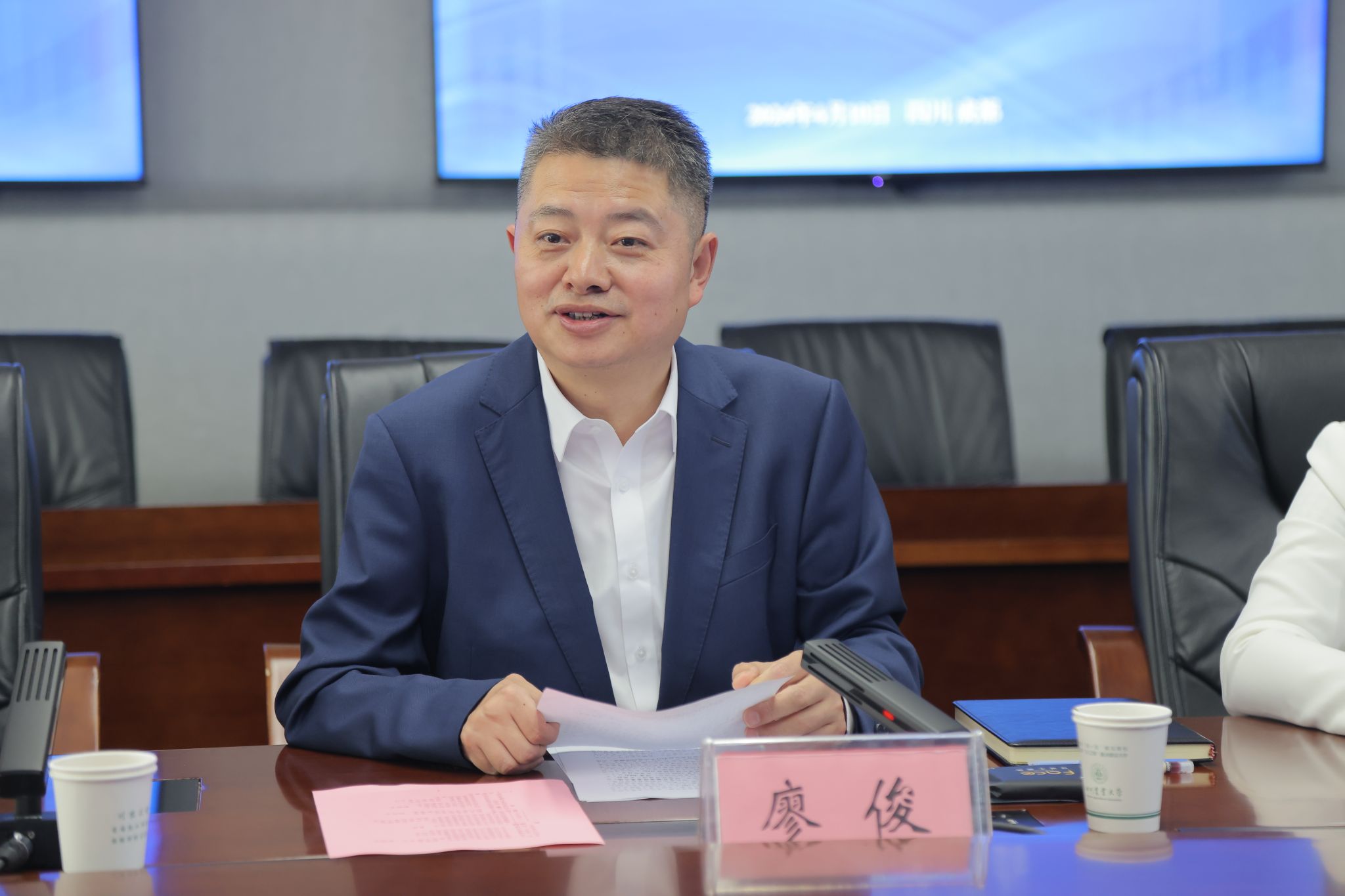 廖俊发表了热情洋溢的致辞,对签约表示祝贺并介绍了叙永县的地理位置、人文历史、生态环境、资源禀赋等基本情况。他表示,叙永县作为乌蒙山区的农业大县,此次签约在此前基础上,将有助于提升双方合作平台的高度、人才交流延伸的广度、产学研用融合拓展的深度。双方合作是顺应时代大势之举,具有广阔前景。期盼接下来尽快完成具体对接,逐年有重点地推进落实合作。