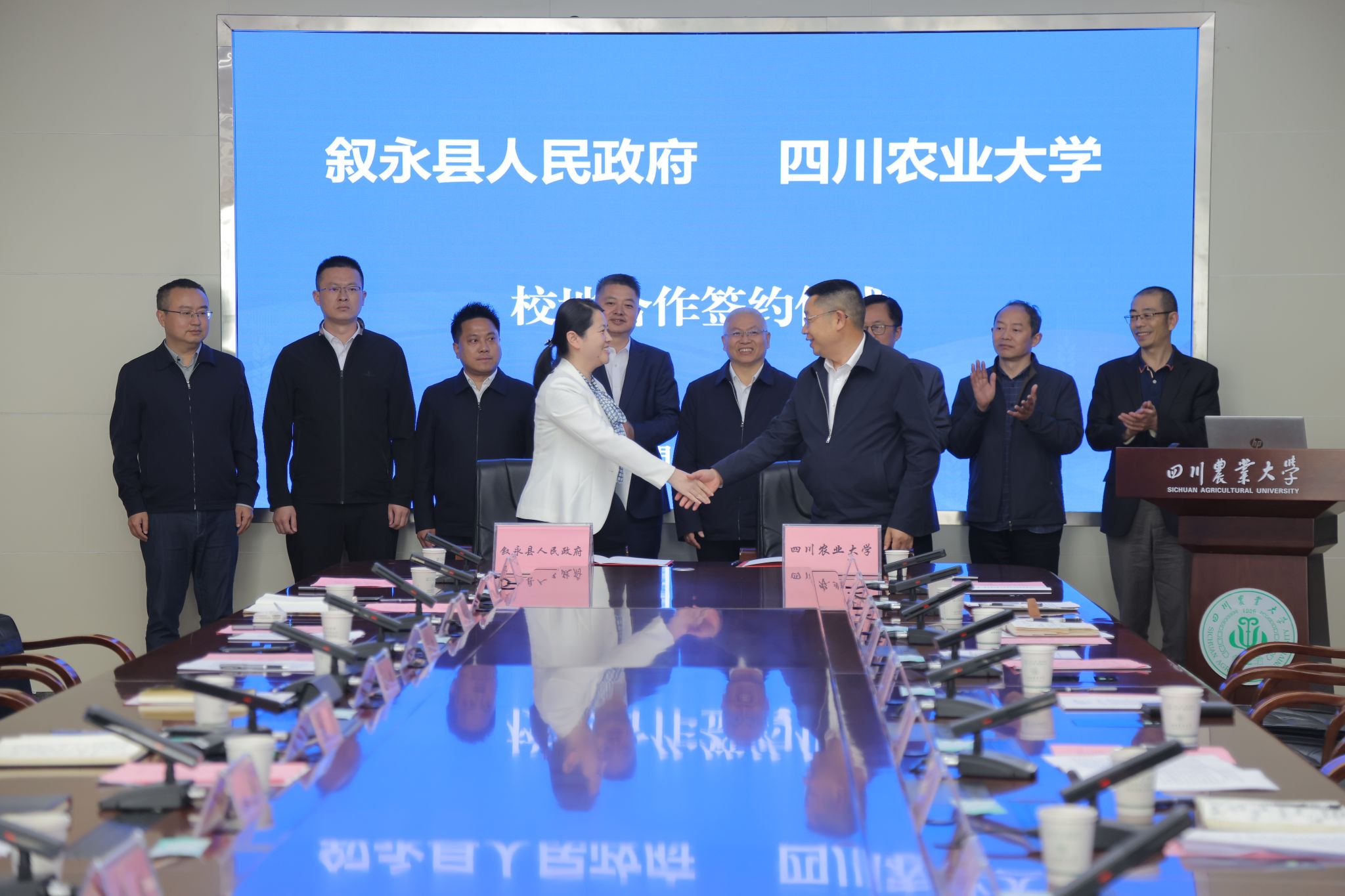 4月10日下午,叙永县与我校签约,正式开启双方深度合作。叙永县委书记廖俊,县长王一米,县委常委、组织部部长李丹,县委常委、县委办公室主任冉浩,副县长彭羽;我校校长吴德,副校长刘登才,研工部、新农村发展研究院、乡村振兴学院等相关部门负责人参加签约仪式。