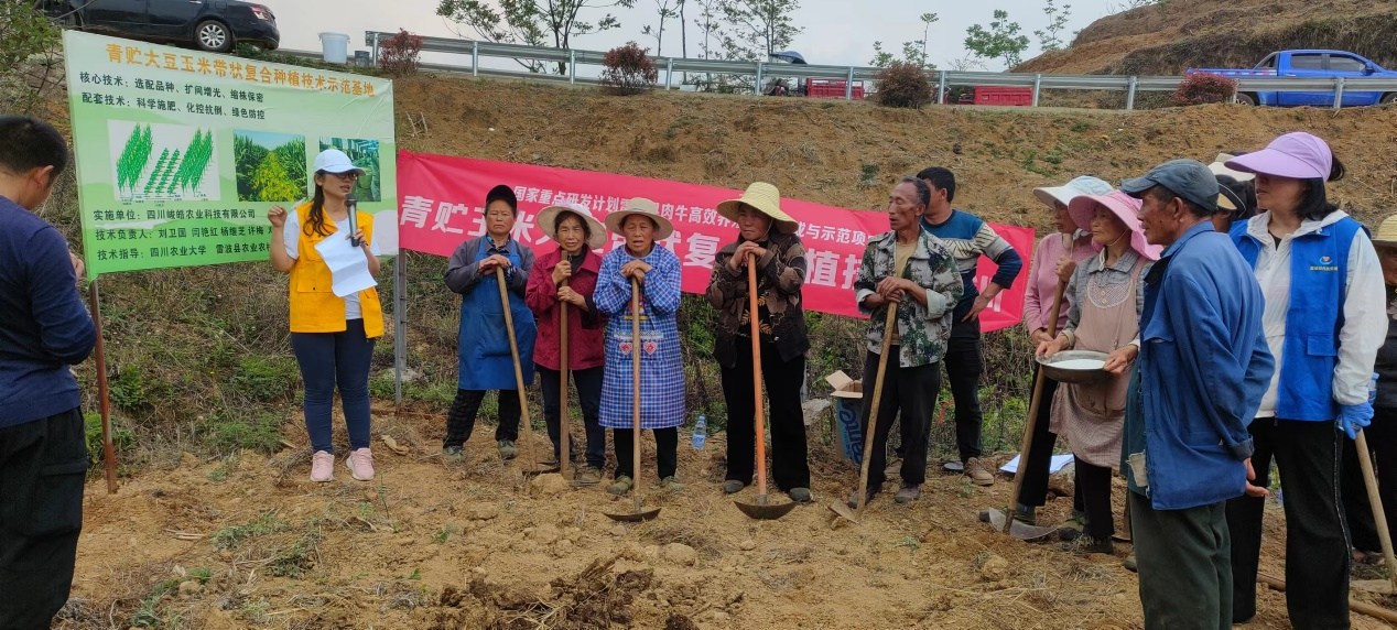 4月16日,在雷波县教育体育和科学技术局、农业局相关负责人陪同下,闫艳红教授等一行抵达位于雷波县汶水镇汶水村的青贮大豆玉米带状复合种植示范基地,为当地农技干部、种养大户和农牧民进行青贮大豆玉米带状复合种植技术培训。闫艳红教授围绕雷波县玉米大豆带状复合种植模式,对大豆玉米的品种选择、田间行距株距、播种方法、合理施肥等内容进行了详细培训,并亲自指导农户进行现场实操。杨继芝副教授针对玉米大豆带状复合种植模式的田间病虫草害防治进行了讲解与指导并示范操作,以确保每位学员都能够理解、观摩和掌握技术要点。