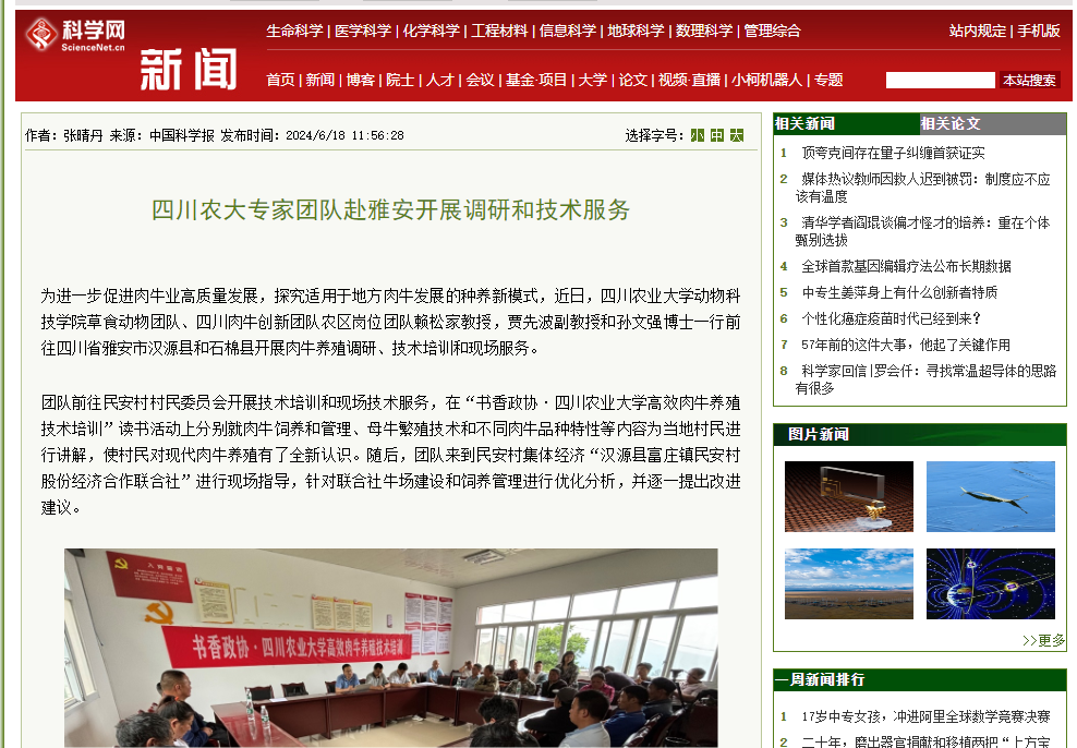 为进一步促进肉牛业高质量发展,探究适用于地方肉牛发展的种养新模式,近日,2138cn太阳城集团动物科技学院草食动物团队、四川肉牛创新团队农区岗位团队赖松家教授,贾先波副教授和孙文强博士一行前往四川省雅安市汉源县和石棉县开展肉牛养殖调研、技术培训和现场服务。