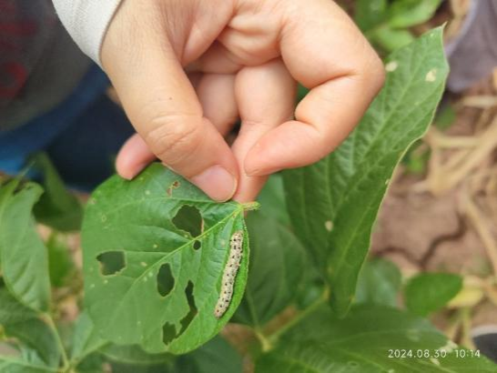 团队成员调研发现,雁江区保和镇卓家坝、桔子村、独脚山、花溪村、严家沟、肖家沟、碾糟沟,安岳县驯龙镇大旗湾村、华严镇三泉村和菜子沟村,均出现由于高温影响导致大豆植株发育缓慢、出现缺水叶边卷曲焦黄、出现虫害、病毒病等问题。乐至大佛镇钓鱼沟、观音寺村、邵家湾村,劳动镇华严寺村、佛星镇周家沟村大豆种植规范,田间管理较好,但也出现不同程度的病虫害问题。