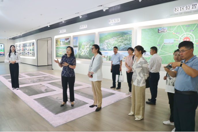 在校党委书记庄天慧的陪同下,强巴央宗一行参观了校史馆,了解学校的历史沿革、办学成就及科研成果。