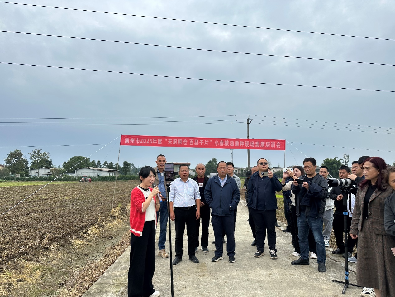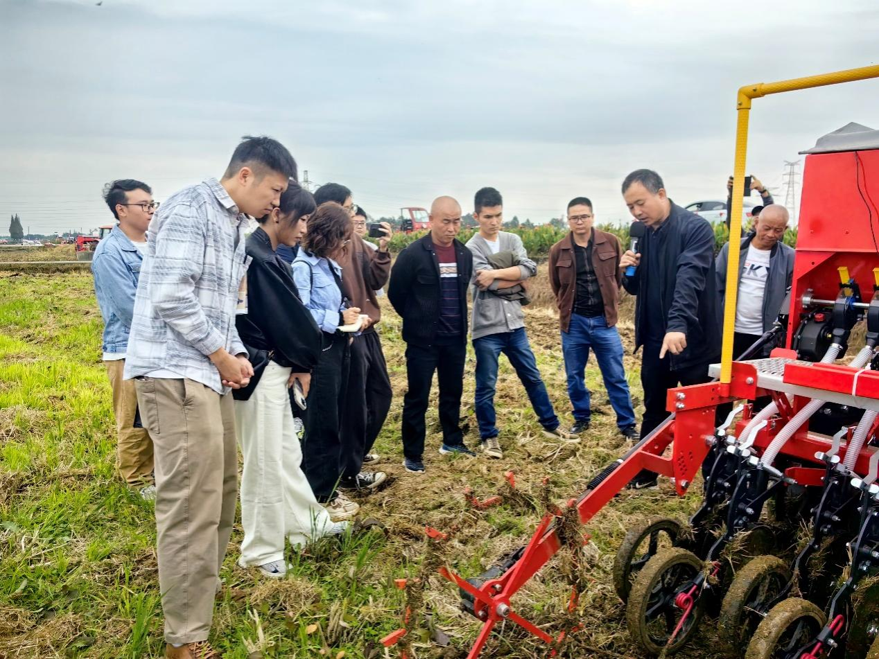 10月25日,我校小麦生理生态与栽培团队与崇州市农业农村局携手,在崇州市隆兴镇黎坝村成功举办了崇州市小麦新技术新机具培训交流会。中国农机院农机正高级工程师刘忠军,四川耀农农业装备有限公司代表,湖北永祥农机装备有限公司代表,崇州市农业农村局副局长黄春江及相关站股负责人,崇州市各镇、街道农业职业经理,四川小麦栽培专家、我校农学院教授樊高琼及团队研究生等100余人参会,会议采用现场观摩、线上同步直播相结合的方式,由黄春江主持。