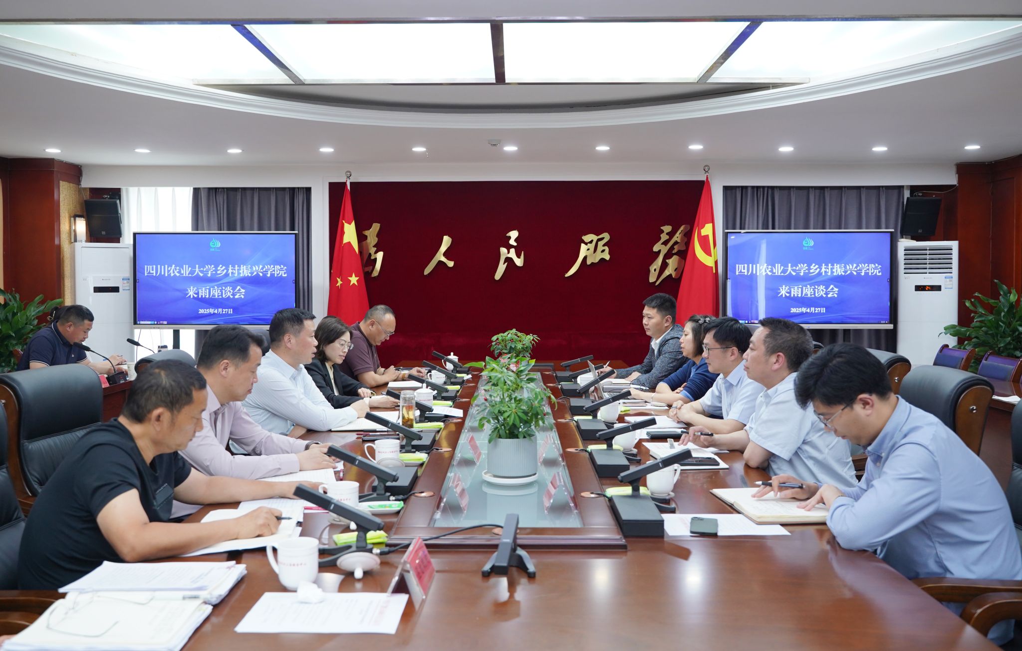 4月27日,我校乡村振兴学院(新农村发展研究院)院长周伦理,直属党支部书记向兵带队赴雅安市雨城区,就区校共建种养循环现代农业产业园区开展交流座谈。区委书记冯俊涛出席,区委副书记王述蓉主持会议。