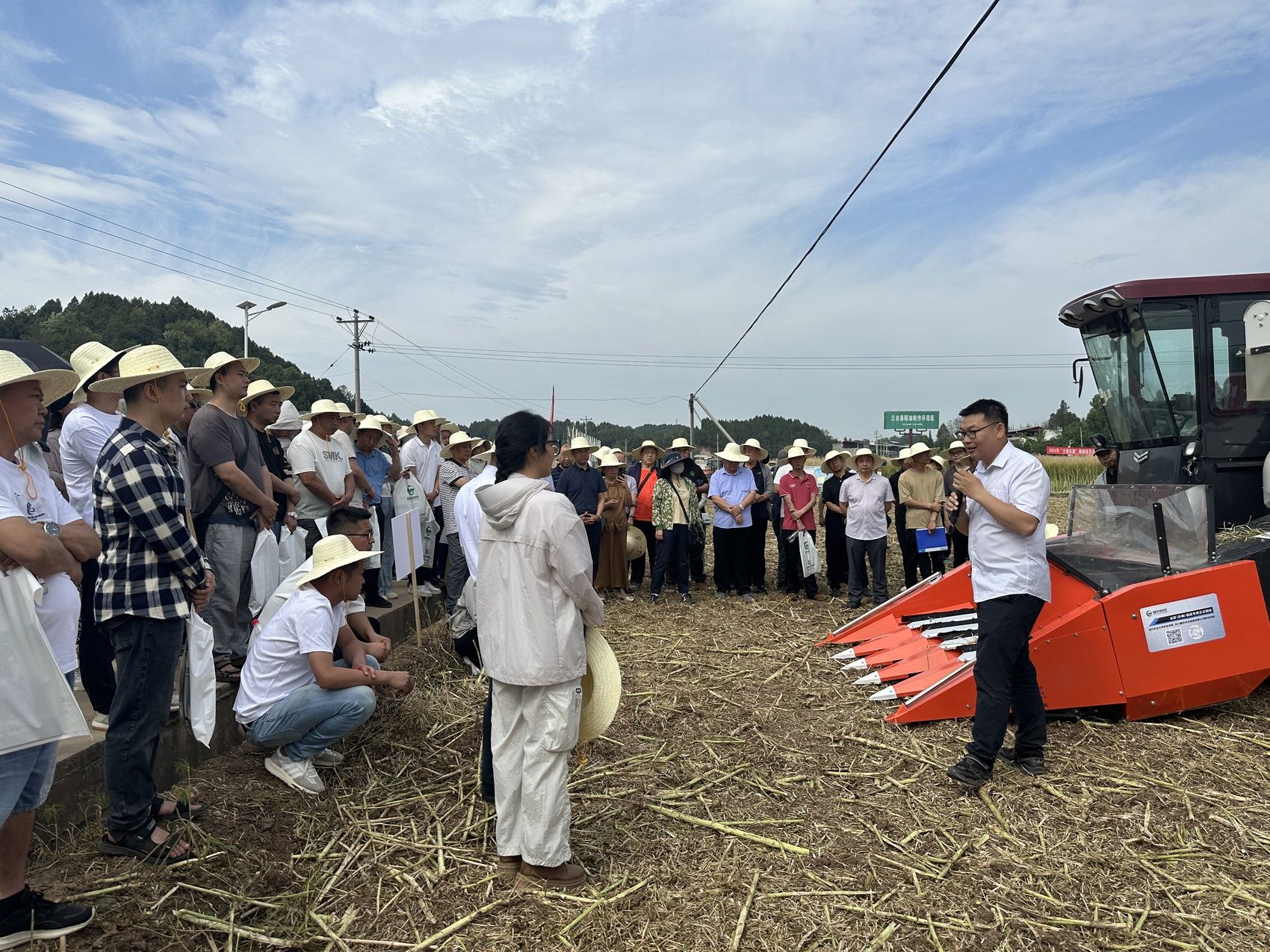 成都市农林科学院农业装备研究所高级工程师史志明则介绍了分段收获装备与技术。现场展示的油菜割晒机和捡拾脱粒机2款机器,可以通过更换机头实现不同的环节切换。由熟练机手进行操作,能够减少机收损失。