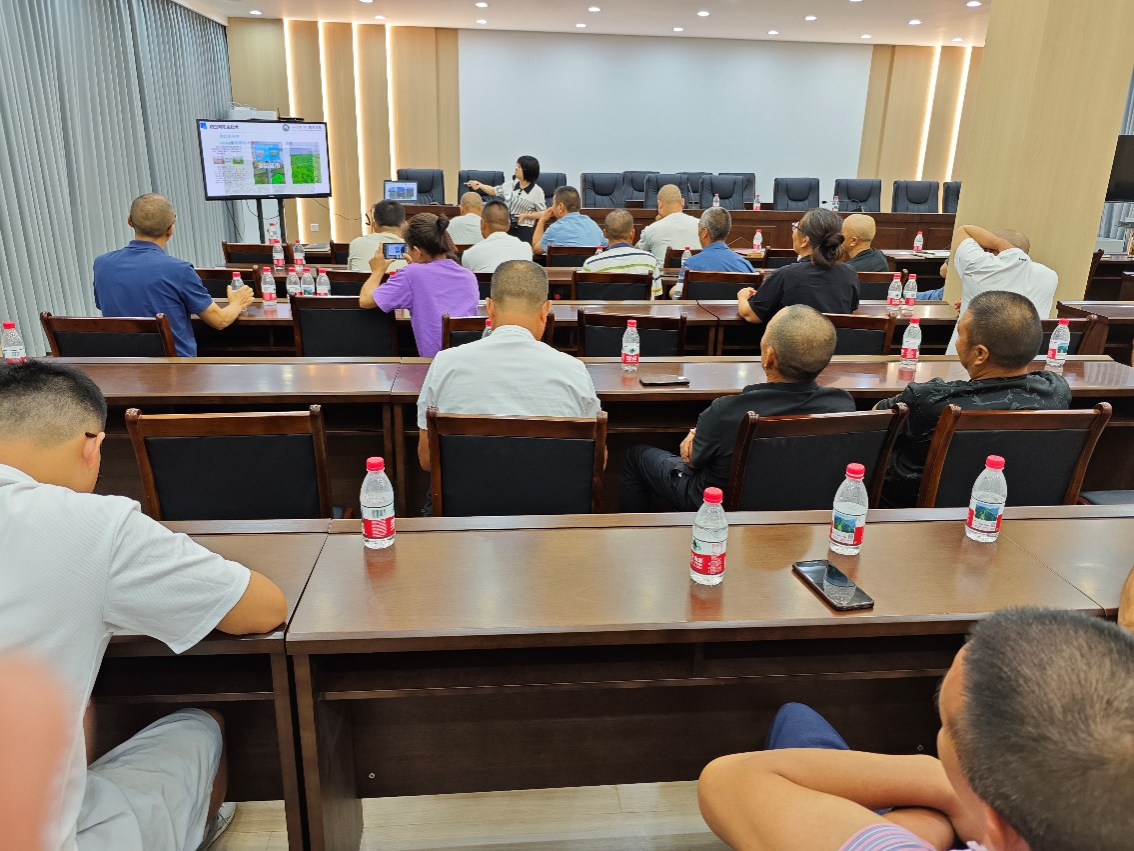 在孝泉镇政府会议室,两位老师为40余名蔬菜种植户做培训,唐懿针对高温多雨季节蔬菜病虫害频发问题,系统讲解了加强田间管理、加强病虫害防治和做好秋播准备工作等应对技术措施。黄志围绕蔬菜绿色高效栽培技术要点,从合理轮作、应用抗性品种和嫁接苗、病虫害绿色防控等方面进行讲解。