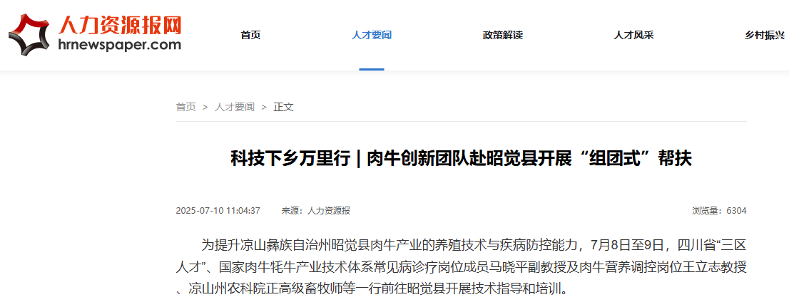 为提升凉山彝族自治州昭觉县肉牛产业的养殖技术与疾病防控能力,7月8日至9日,四川省“三区人才”、国家肉牛牦牛产业技术体系常见病诊疗岗位成员马晓平副教授及肉牛营养调控岗位王立志教授、凉山州农科院正高级畜牧师等一行前往昭觉县开展技术指导和培训。
