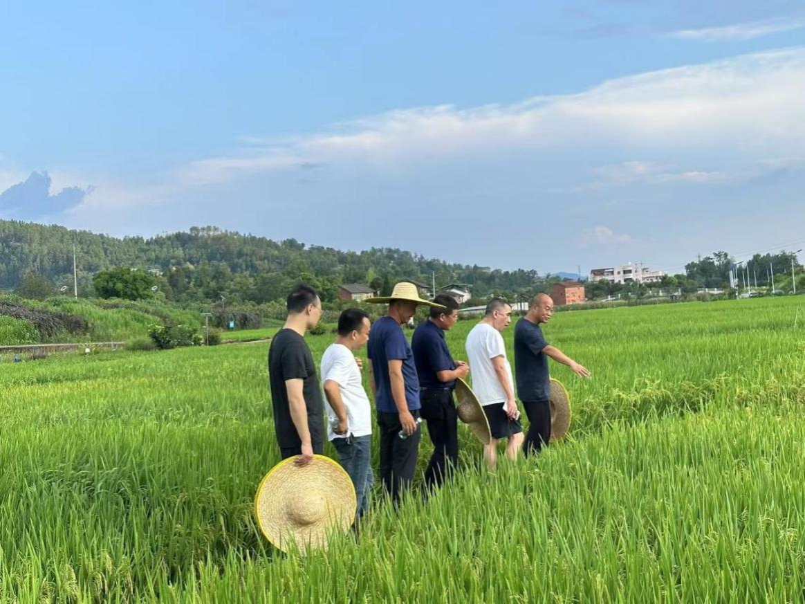 考察期间,团队先后走访了达州市农业科学研究院北斗科研基地、达州市达川区农业科学研究所、达州市米城乡贡米种植基地、四川科谷高农科技有限公司及四川东柳醪糟有限责任公司等多个单位与基地。针对当前“始穗期”这一决定水稻产量与米质的关键阶段,团队对示范点就水肥协同调控、病虫害绿色精准防控策略以及防灾减灾应急措施等关键环节进行了细致指导,旨在确保各试验优质稻品种充分实现其高产优质潜力。