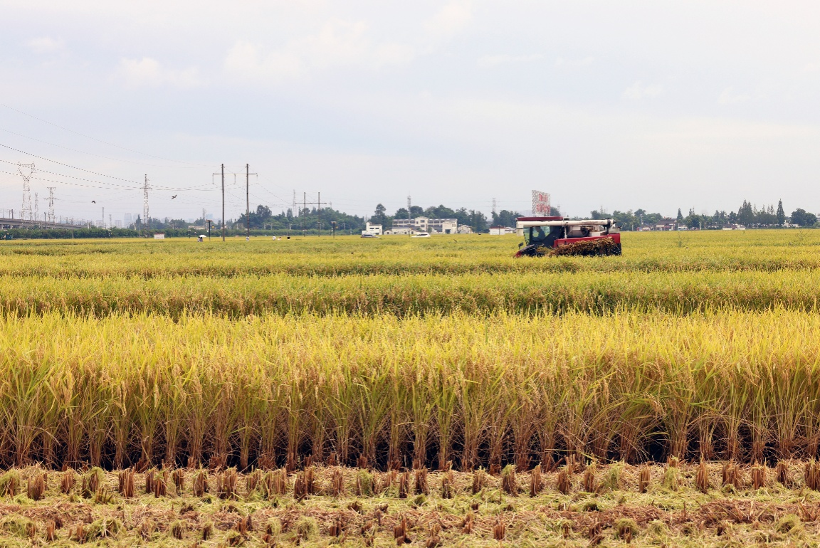 眉山东坡永丰村的高标准示范田里,稻穗低垂、机声隆隆,农户脸上洋溢着丰收的喜悦。9月18日,永丰村1500亩水稻全部收割完毕,专家现场测产平均亩产达877公斤,超高产田块突破900公斤,成为新时代天府粮仓建设再创佳绩的一项标志性成果。