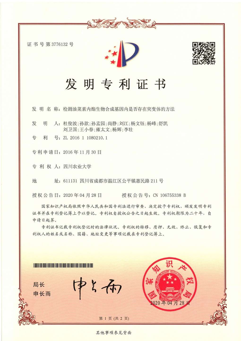 发明人:杜俊波;孙歆;孙孟园;尚静;刘江;杨文钰;杨峰;舒凯;刘卫国;王小春;雍太文;杨辉;李壮