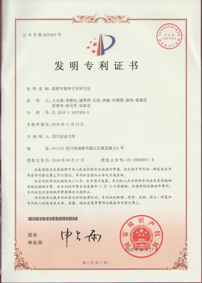 本发明提供了枇杷早萌种子育种方法,属于植物栽培领域,该方法包括以下步骤:a、从枇杷成熟果实中采集早萌种子;b、在盛有营养土的育苗容器中将早萌种子培养成苗;c、将早萌种子苗移栽到大田;d、植株开花结果后鉴定出优良植株。本发明利用枇杷早萌种子可获得高达13.4%的优良植株,成功率高,操作简单,不需要特别的仪器设备,费用低廉,具有很好的实际应用前景。