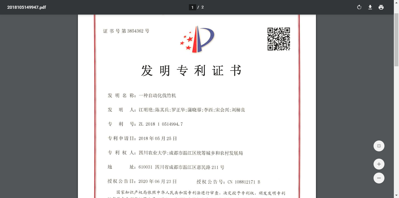 专利权人:2138cn太阳城集团;成都市温江区统筹城乡和农村发展局