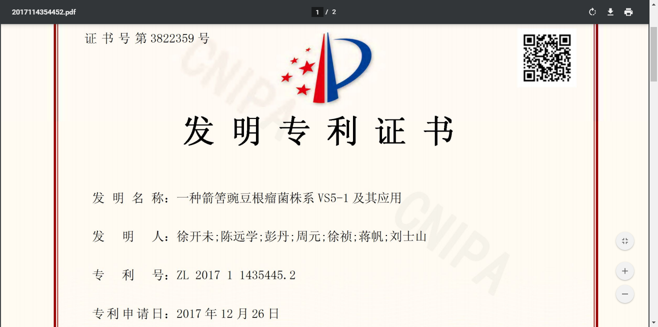一种箭筈豌豆根瘤菌株系VS5?1及其应用,该菌株是从新鲜的箭筈豌豆根瘤中分离纯化得到的,属于根瘤菌属Rhizobium anhuiense株系。该菌株系于2017年10月23日保藏于武汉大学中国典型培养物保藏中心,保藏编号为:CCTCCNO:M2017605。本发明所述的箭筈豌豆根瘤菌VS5?1应用于四川箭筈豌豆的生产,是一种共生固氮能力强,对箭筈豌豆增产效果明显,兼具有分泌IAA能力、溶磷能力、溶钾能力、抗逆性强的优良箭筈豌豆根瘤菌株,在不施氮肥和其他肥料只接种根瘤菌VS5?1的情况下,使箭筈豌豆鲜草增产85.2%以上,鲜根产量增产119.3%。