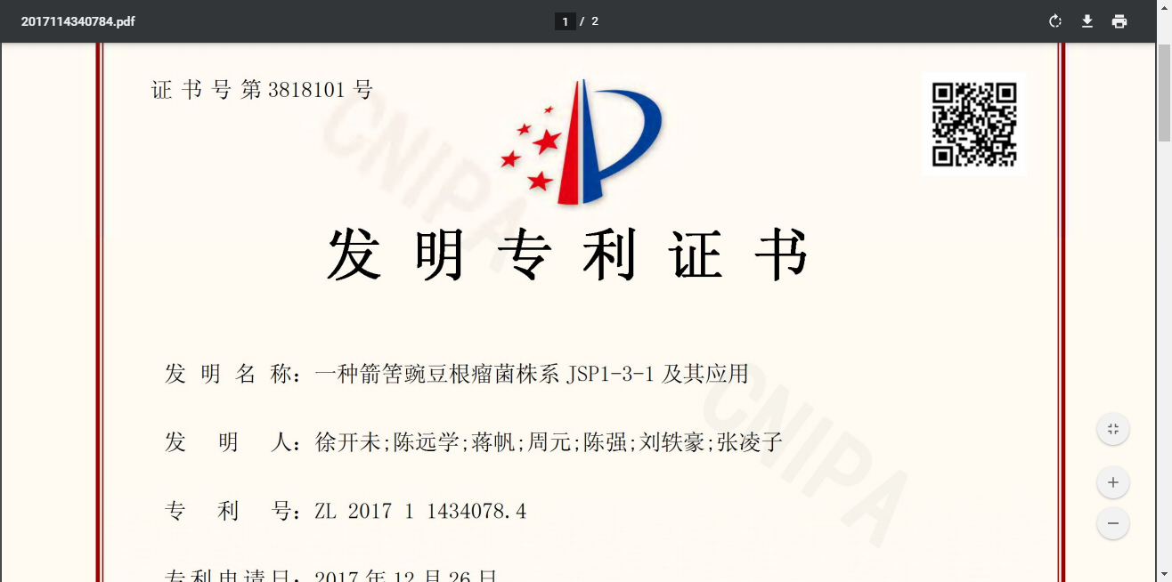 一种箭筈豌豆根瘤菌株系JSP1?3?1及其应用,该菌株是从新鲜的箭筈豌豆根瘤中分离纯化得到的,属于根瘤菌属Rhizobium leguminosarum株系。该菌株系于2017年10月23日保藏于武汉大学中国典型培养物保藏中心,保藏编号为:CCTCC NO:M 2017617。本发明所述的箭筈豌豆根瘤菌JSP1?3?1应用于四川箭筈豌豆的生产,是一种共生固氮能力强,对箭筈豌豆增产效果明显,兼具有分泌IAA能力、溶磷能力、抗逆性强的优良箭筈豌豆根瘤菌株,在不施氮肥和其他肥料只接种根瘤菌JSP1?3?1的情况下,使箭筈豌豆的鲜草产量增加168.5%,根产量增加34.7%,根瘤数增加189.9%,株高增加18.2%。