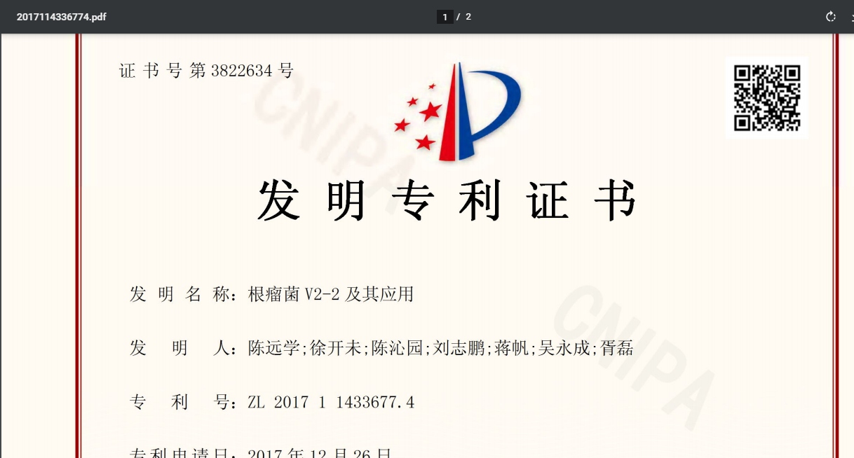 本发明公开了根瘤菌(Rhizobium fabae)V2?2及其应用,保藏于中国典型培养物保藏中心,保藏编号为CCTCC NO:M 2017609。本发明的根瘤菌V2?2是一株共生固氮能力强,对四川光叶紫花苕子增产明显,兼具有分泌IAA能力、具有溶有机磷、溶钾能力、抗逆性强的优良紫花苕子根瘤菌菌株。在不施氮肥、接种V2?2使紫花苕子鲜草产量增产23.8%以上,鲜根产量增产128.8%。