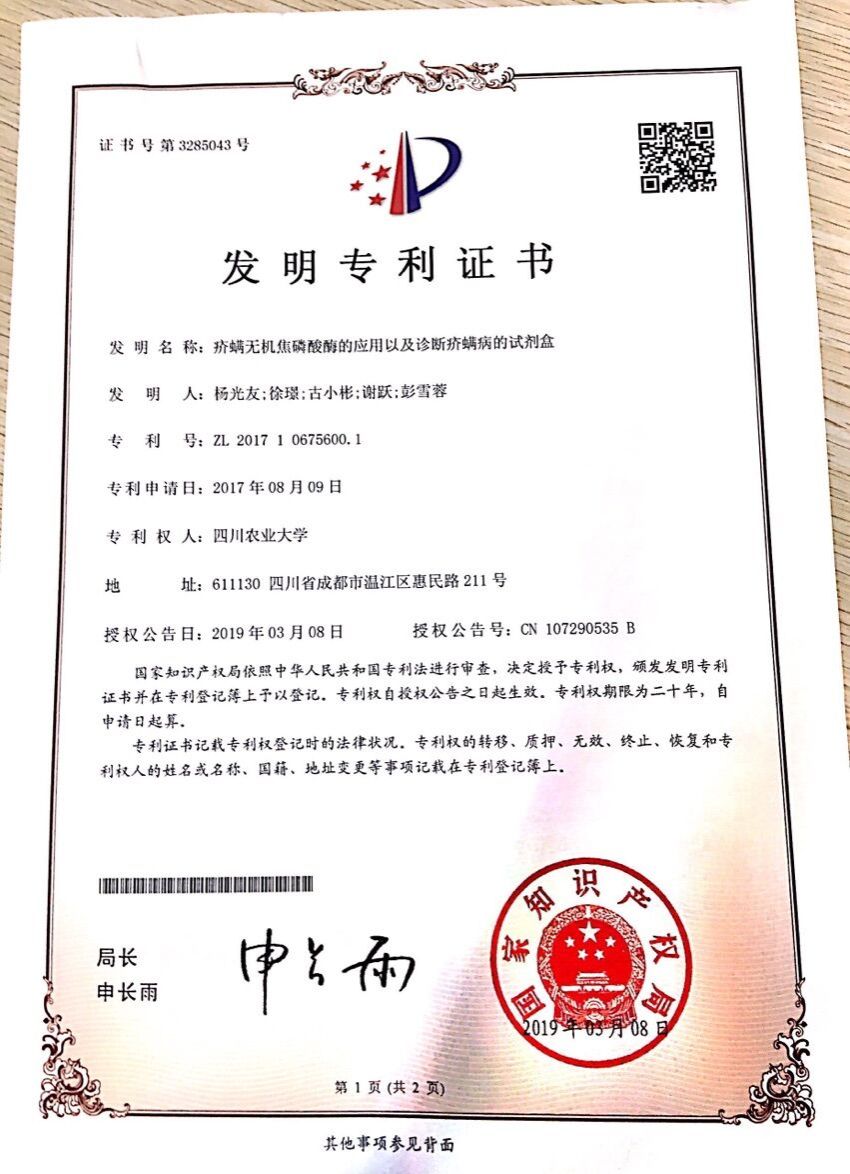本发明涉及生物技术领域,本发明提供了疥螨蛋白酪氨酸激酶作为疥螨病诊断抗原的应用,相关实验结果显示,疥螨蛋白酪氨酸激酶能够被自然感染疥螨的兔阳性血清以及抗PTK的兔血清识别,具有较强的反应原性,同时SsPTK?ELISA方法表现出极高敏感性和特异性,对早期疥螨病具备百分百的检出率,种种结果证明疥螨蛋白酪氨酸激酶可以作为疥螨病的诊断抗原,特别是在对早期疥螨病的诊断中。
